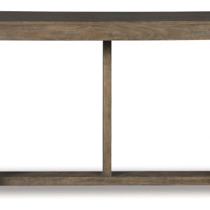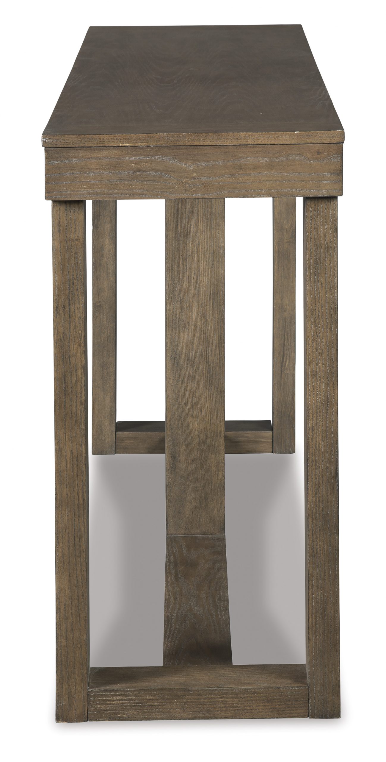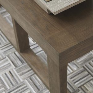 The Cariton sofa table masters the art of simplicity. Bold, blocky profile is enriched with plank-effect styling and a textured grayish brown finish for a look that’s cool and contemporary and a vibe that’s warm and inviting.