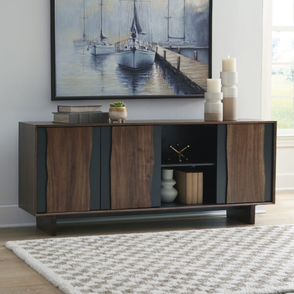 The Welby accent cabinet recalls the rugged textures of nature and brings them indoors. Live edge door fronts pop against the neutral finish for a refined-meets-salvaged feel. Whether it’s used as a chic storage piece or an eclectic TV stand, this cabinet radiates authentic, beautiful character.