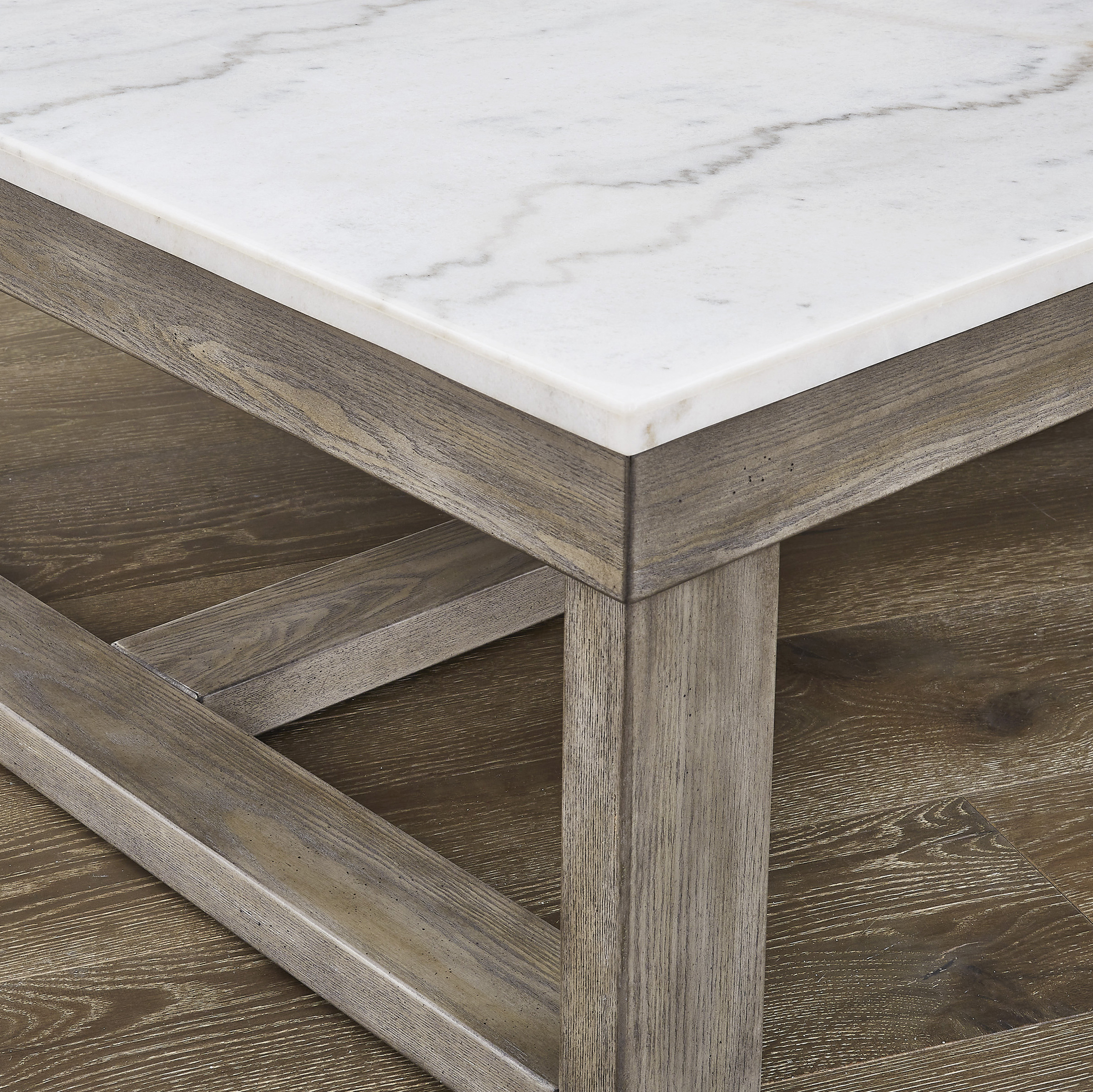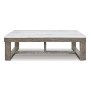 The Loyaska coffee table is simple in design but big on style. Finished with a trend-right grayish brown wood tone, its bold, blocky profile and natural marble top are timeless classic choices that work so well with large sectional family room settings. Adding to its beauty, the marble top’s color variations, fissures, mineral deposits and veining are naturally formed and are not defects.