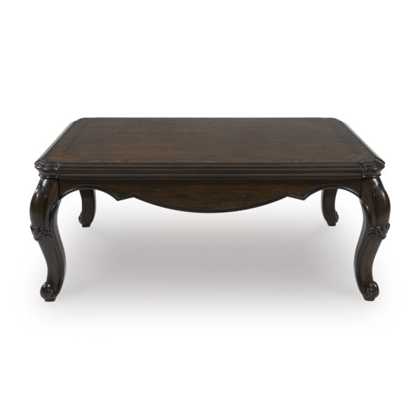 Lavish, luxurious living is within reach when you add the Maylee coffee table to your living room. Recalling a classic sense of refinement, its elegant cabriole legs make a beautifully bold statement. Ornate details on the apron add an air of opulence to the regal dark brown finish. The look is timeless. The feel? Right at home.
