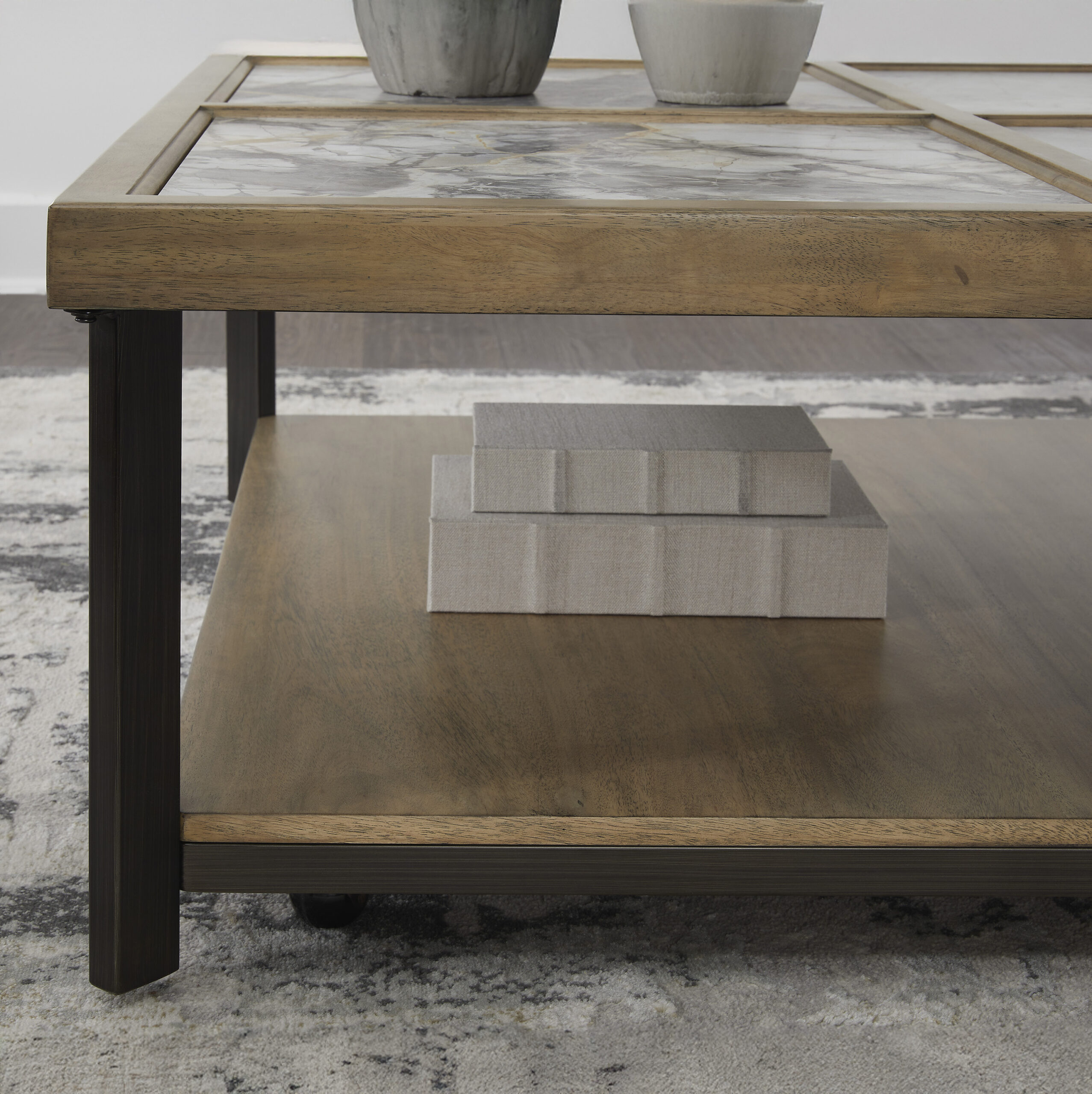 Crafted with the utmost attention to detail, the Montia coffee table boasts premium materials that ensure both durability and elegance. The tabletop’s sintered stone tile not only creates a visually appealing look but also enhances the table’s robustness. Casters allow you to effortlessly rearrange your living area whenever you desire. Whether you’re hosting guests or unwinding with a steaming cup of coffee, this table instantly adds a touch of sophistication to your living space.