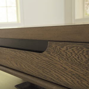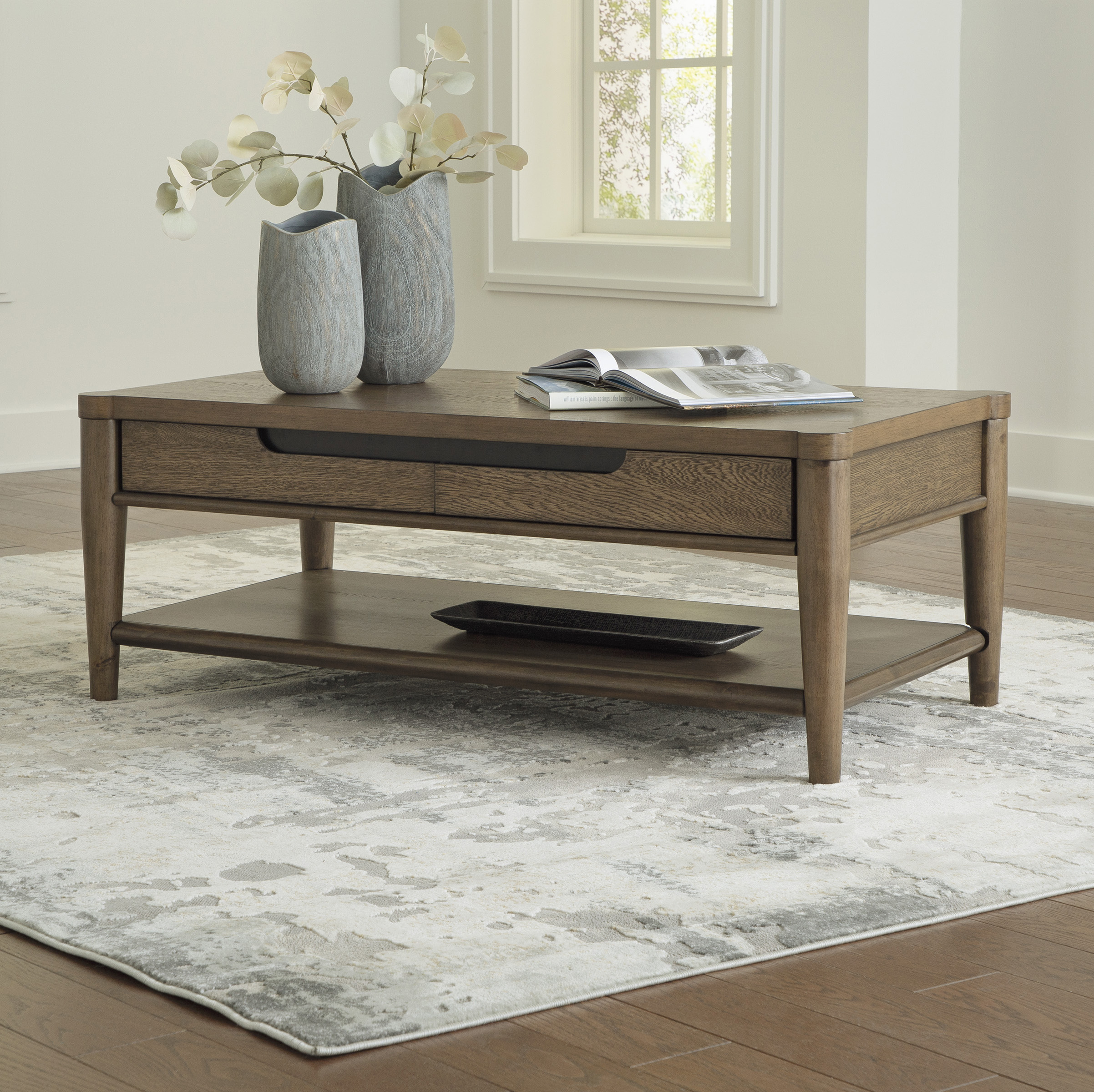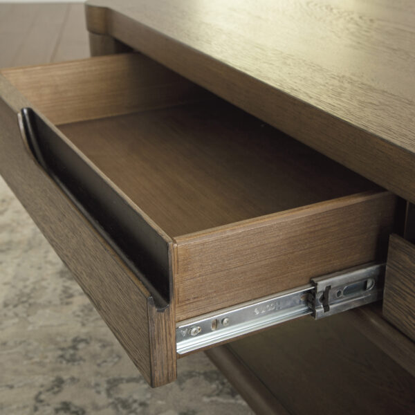 Elevate your modern or mid-century living room with the stylish Roanhowe coffee table. It combines sophistication and functionality, allowing you to showcase decorative items on an open shelf and conveniently store gaming controllers and remotes in the spacious drawers. Imagine entertaining guests with this gorgeous table, adding a touch of minimalism with big character to your home.