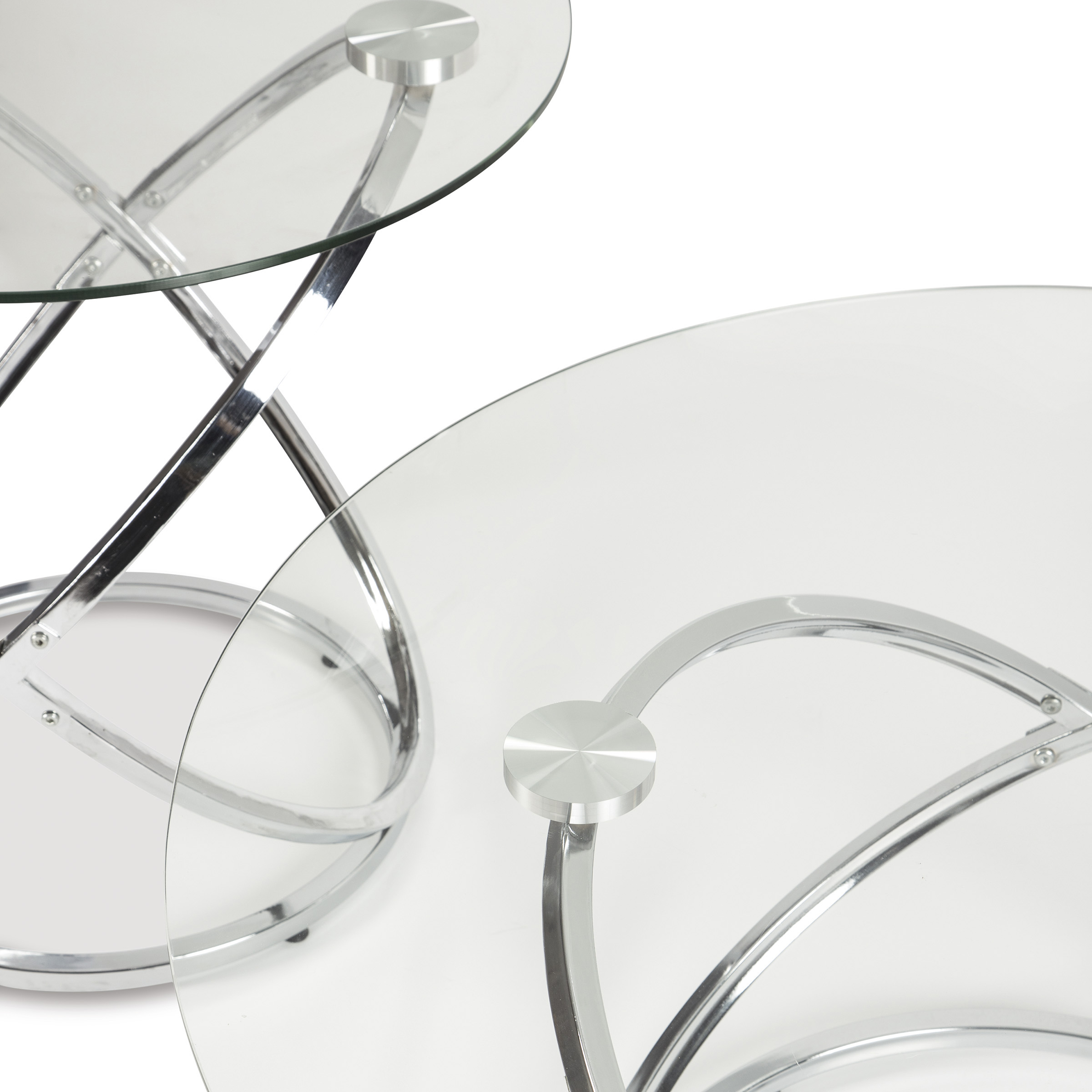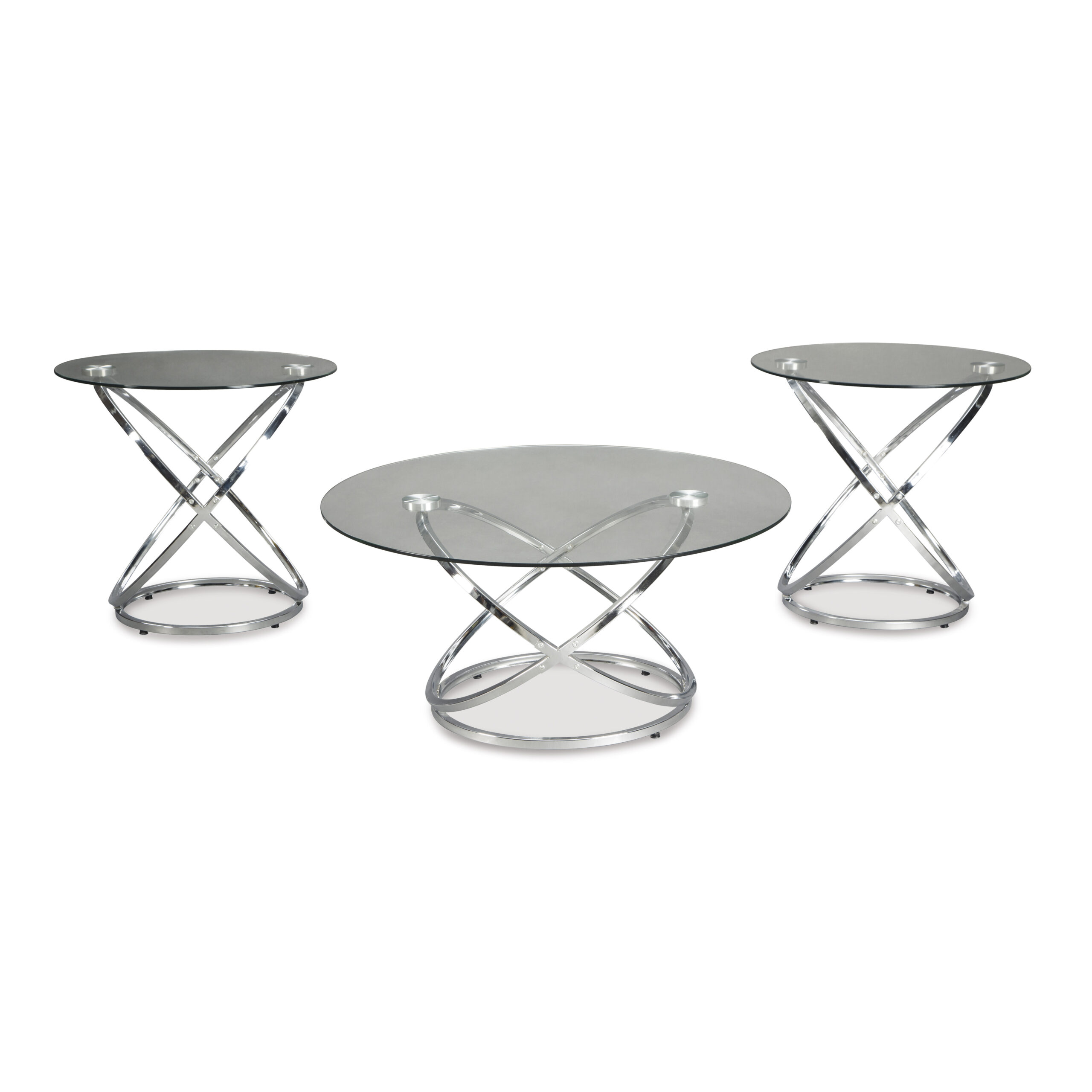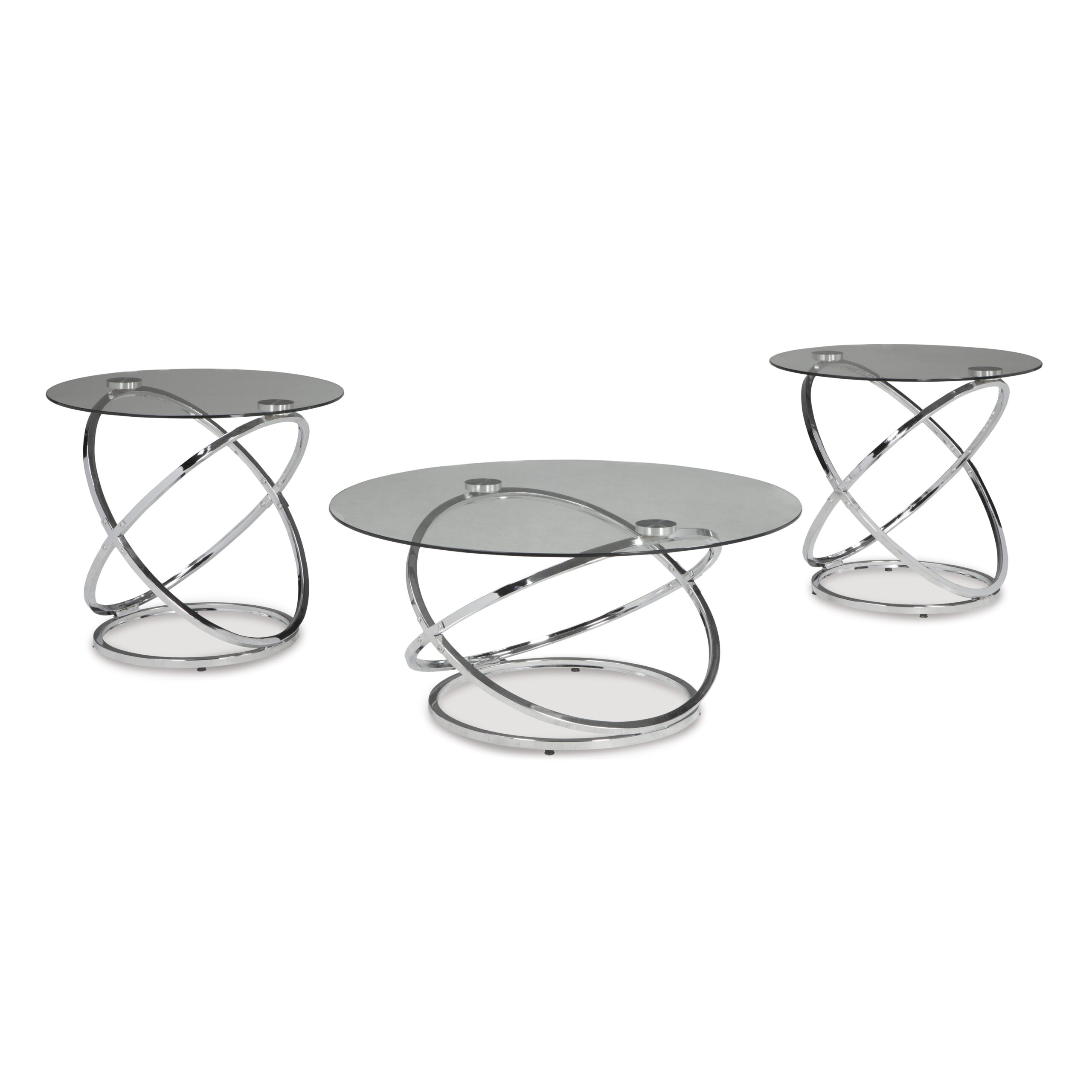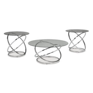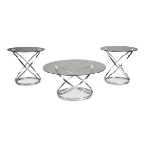 If you’ve been holding out for an ultra-contemporary look that’s delightfully unique, the Hollynyx round coffee table set is clearly worth waiting for. Chrome-tone metal rings are topped with clear glass with polished edges for a masterfully modern look with minimal fuss.