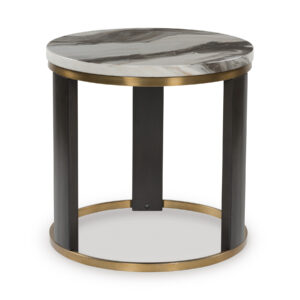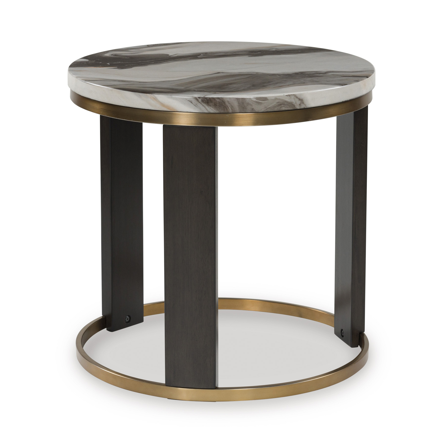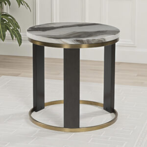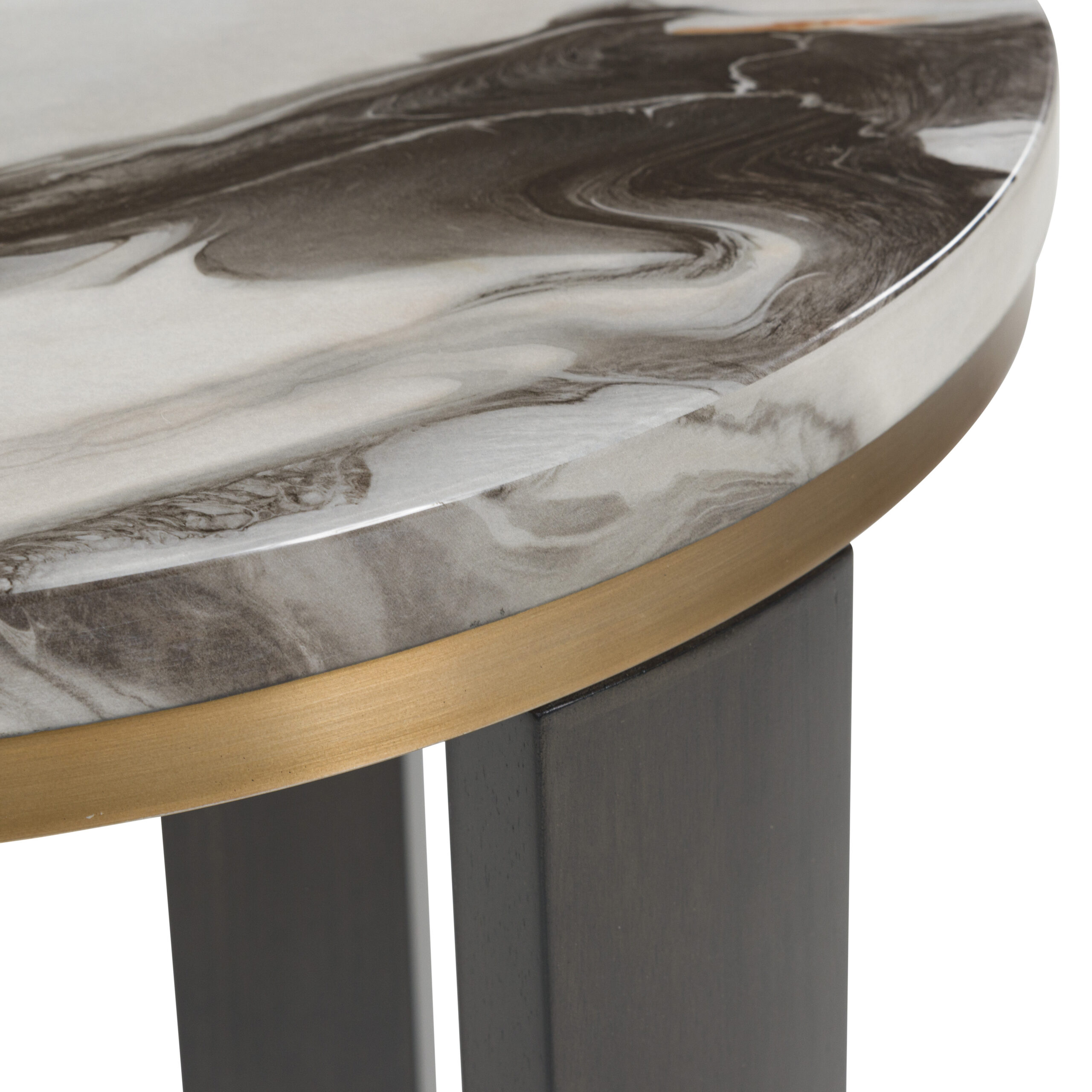 Ultra-contemporary design, everyday convenience. The Jazmore end table completes your confidently curated living room with its trend-forward pairing of a marble-patterned top and an eye-catching brass-tone frame. Dark wood grain on the legs provides a beautiful contrast. It’s well-suited for supporting a sofa-side lamp, holding drinks or displaying decor in sophisticated style.