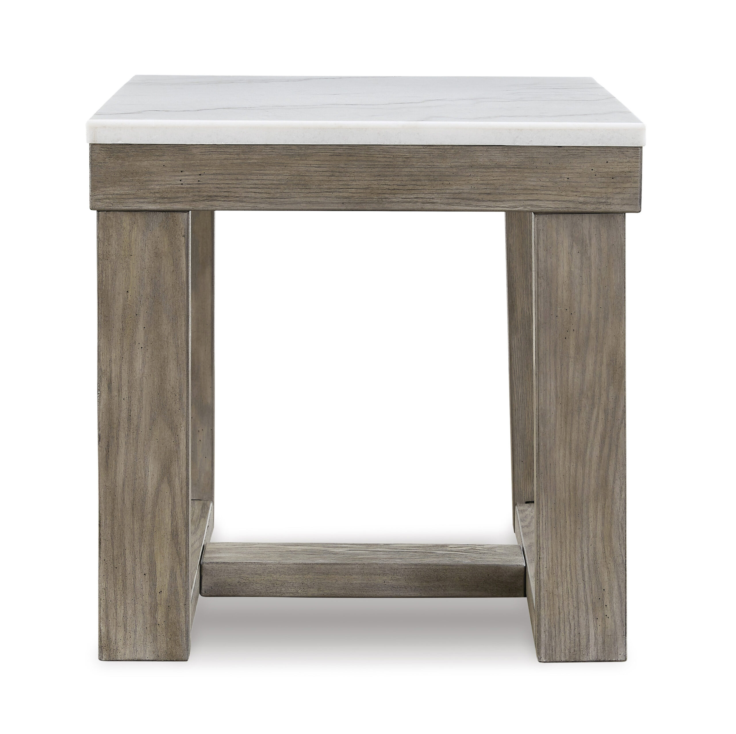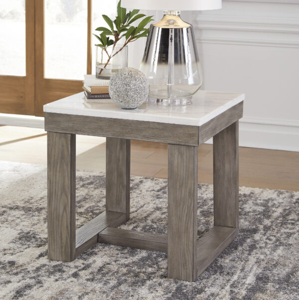 The Loyaska square end table is simple in design but big on style. Finished with a trend-right grayish brown wood tone, its bold, blocky profile and natural marble top are timeless classic choices that work so well with a variety of settings. Adding to its beauty, the marble top’s color variations, fissures, mineral deposits and veining are naturally formed and are not defects.