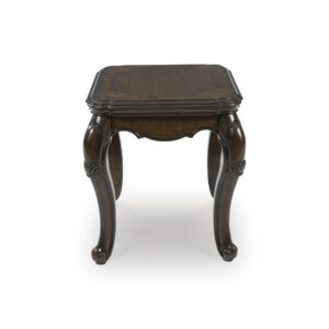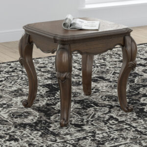 Lavish, luxurious living is within reach when you add the Maylee end table to your living room. Recalling a classic sense of refinement, its elegant cabriole legs make a beautifully bold statement. Ornate details on the apron add an air of opulence to the regal dark brown finish. The look is timeless. The feel? Right at home.
