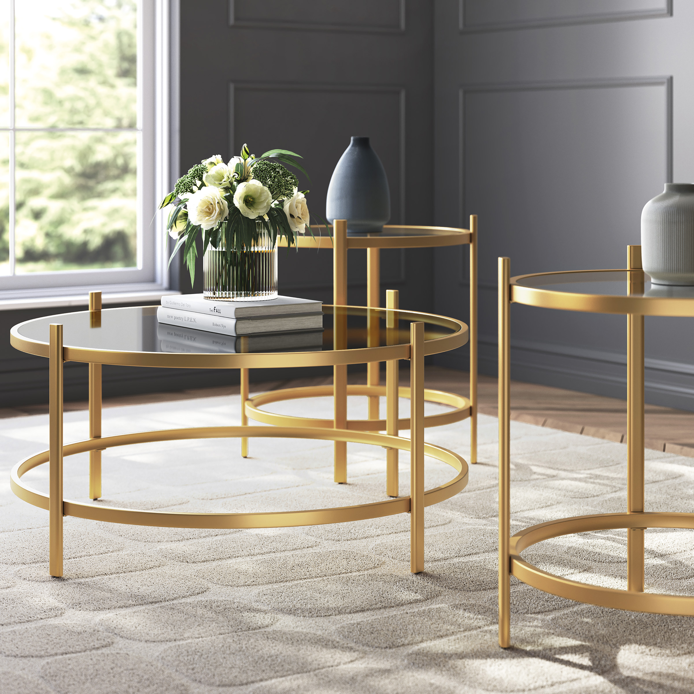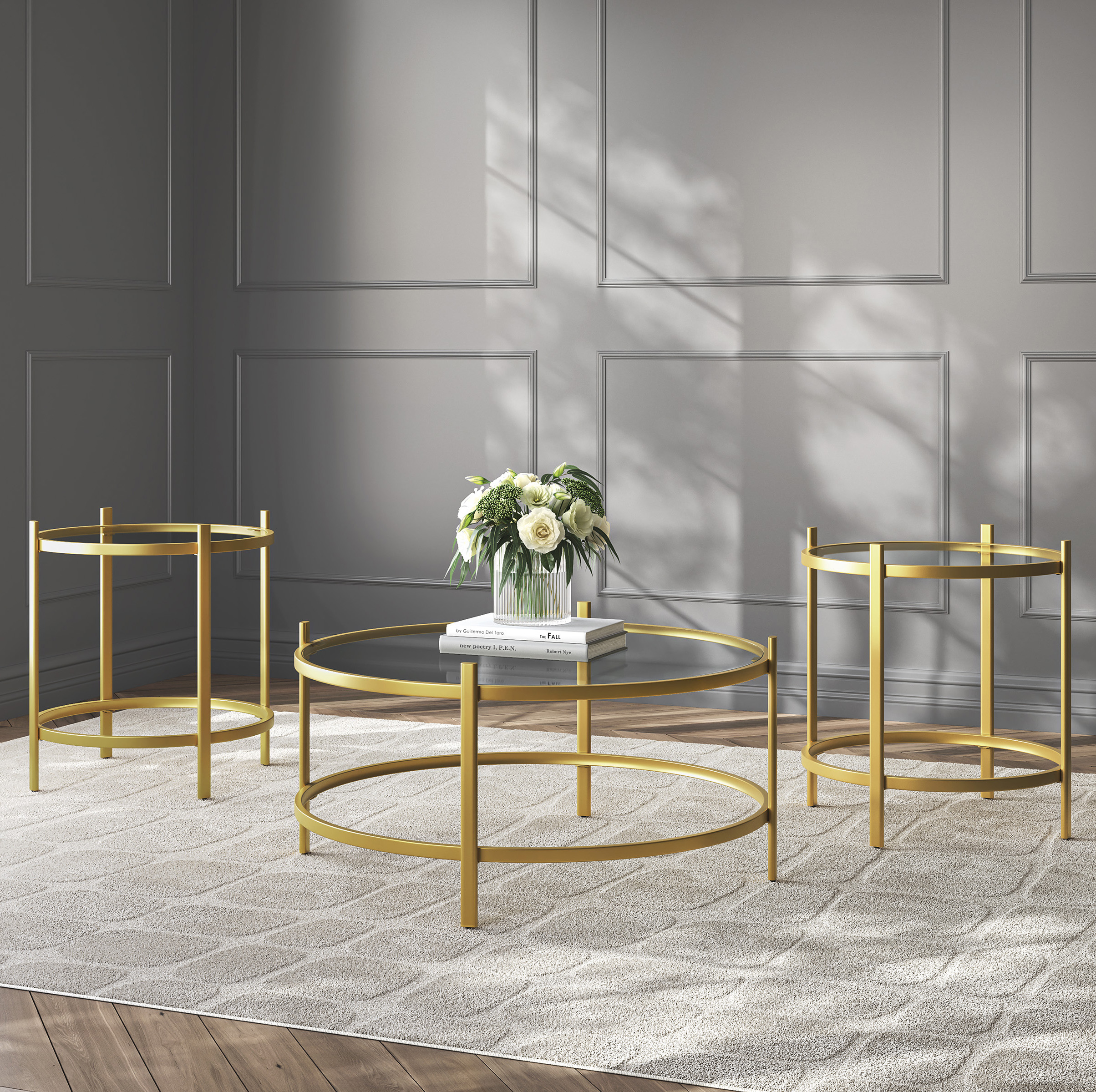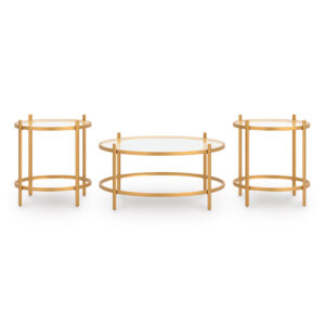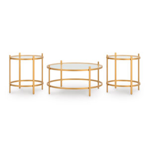 Chic and sleek, the Pearlox table set satisfies your taste for casual contemporary design. The luxurious goldtone frames and glass tops exemplify simple sophistication. Adorn these tables with an array of art books, fresh flowers and chic trinkets for a stunning style statement.