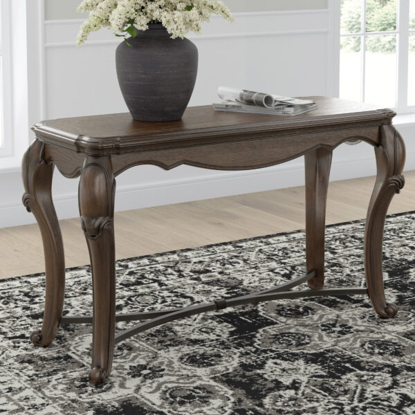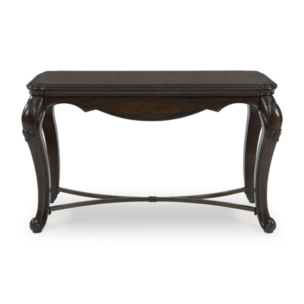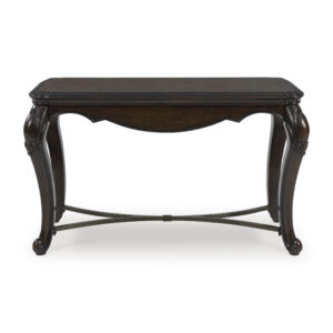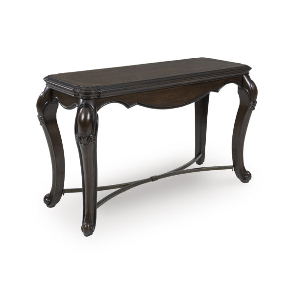 Lavish, luxurious living is within reach when you add the Maylee sofa table to your living room. Recalling a classic sense of refinement, its elegant cabriole legs make a beautifully bold statement. Ornate details on the apron add an air of opulence to the regal dark brown finish. The look is timeless. The feel? Right at home.