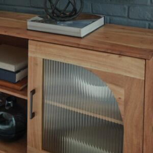 Simply chic storage awaits with the Adway accent cabinet. With the versatility to act as a classic sideboard or a trendy TV stand, it’s at home in settings ranging from casual to modern. Doors with curved half-arch glass inserts soften the clean-lined look, while the removable shelves inside give you that much more flexibility. Openings in the back for electronics keep cables neatly organized, and the open middle shelving acts as a perfect host for media consoles.